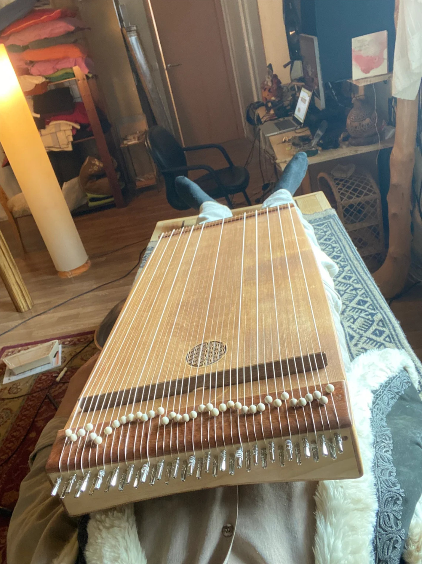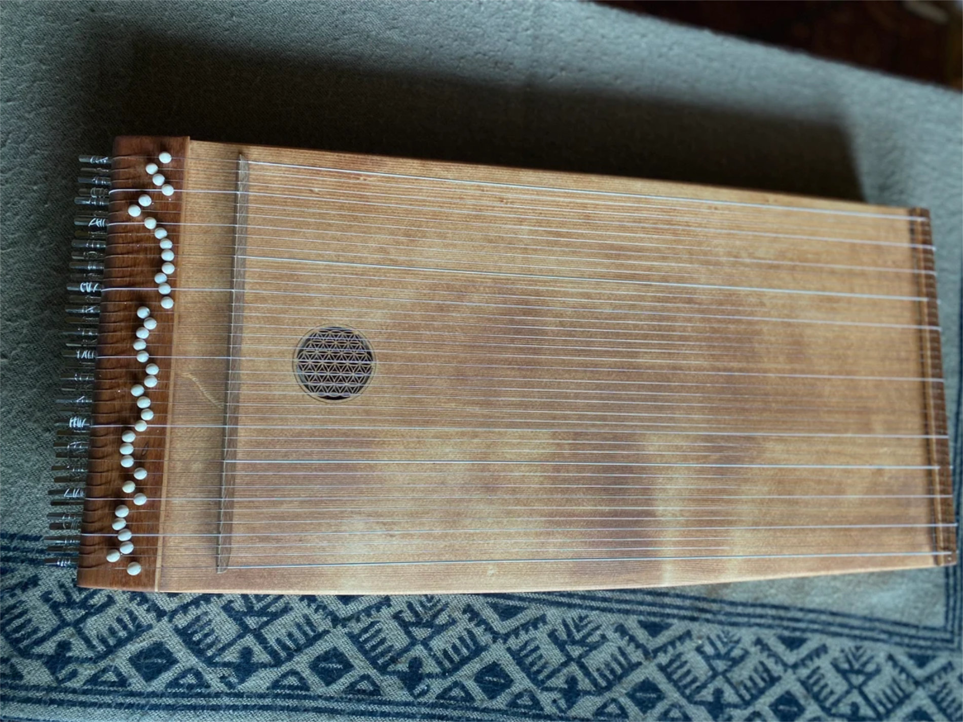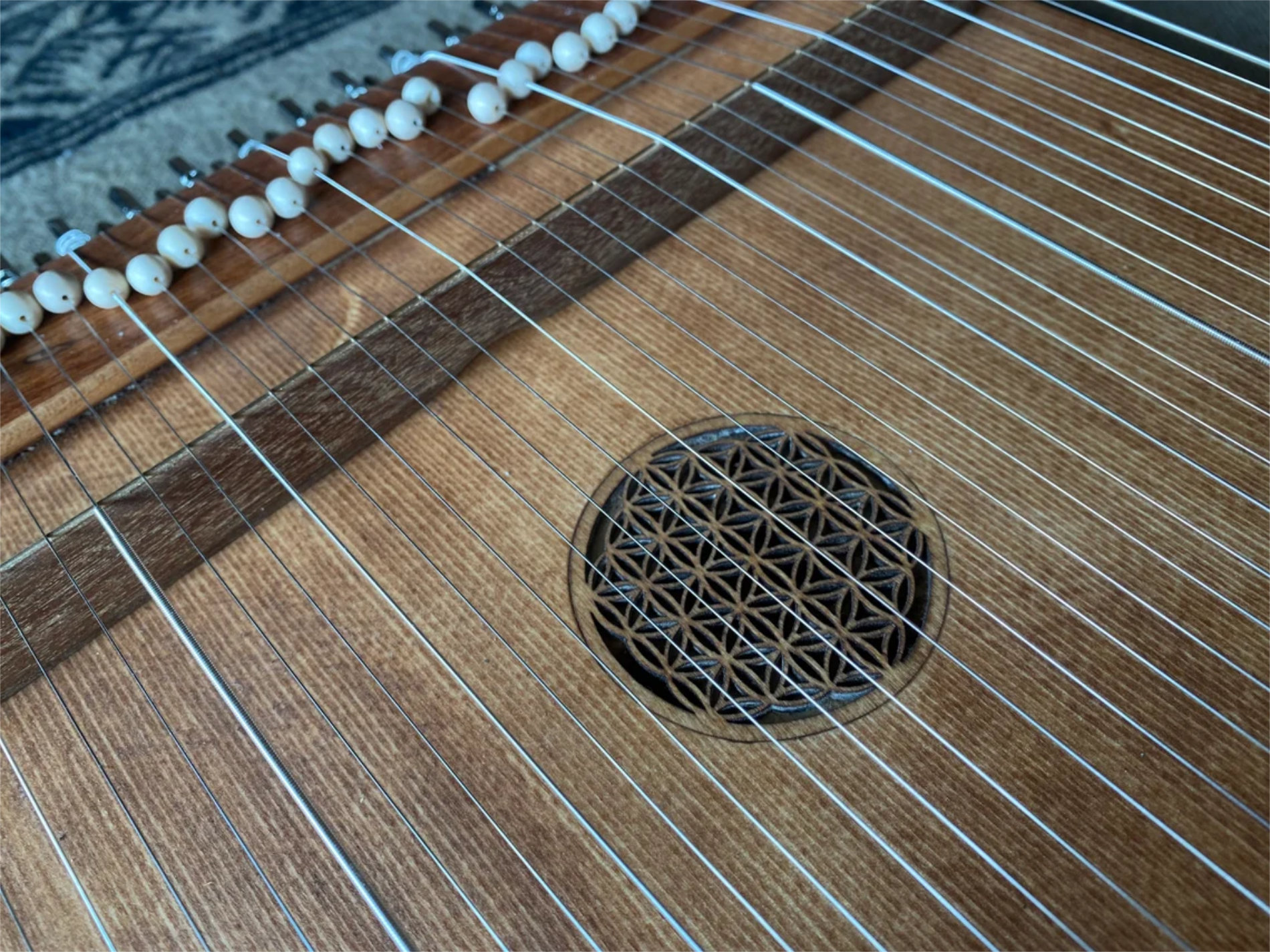 Este tipo de monocordón está diseñado para crear un zumbido cálido, con muchos matices, manteniendo un bajo agradable. Lumnezia es el monocordio de mayor tamaño de mi cuerpo. Tiene un sonido rico y armonioso, con muchas voces silbantes que se pueden crear tocando sus cuerdas en diferentes lugares.